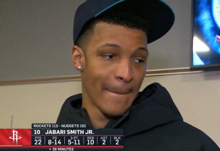 直播吧12月21日讯NBA惯例赛,火箭115-101打败掘金。赛后小贾巴里·史姑娘领受了采访。