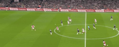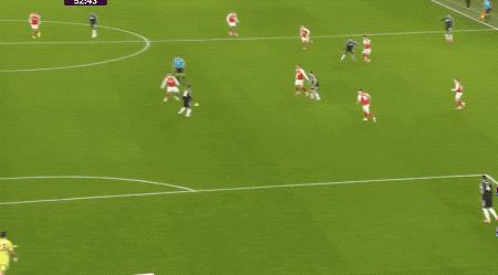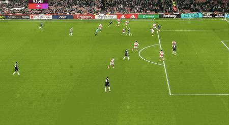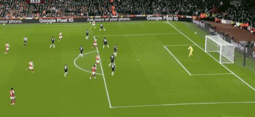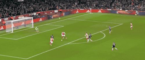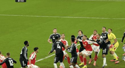 第 48 分钟,萨卡开出角球,加布里埃尔在马丁内斯的腋下将球打进,这亦然阿森纳本场赢得的第一个角球。