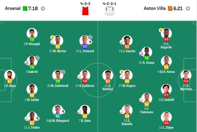 维拉首发:23- 马丁内斯、26- 博加德、4- 孔萨、3- 林德洛夫、12- 迪涅、24- 奥纳纳(46 ’ 7- 麦金)、8- 蒂莱曼斯(81 ’ 20- 贾马尔丁 · 吉莫)、19- 桑乔(61 ’ 17- 马伦)、27- 罗杰斯(81 ’ 53- 乔治 · 海明斯)、10- 布恩迪亚(61 ’ 16- 安德烈斯 · 加西亚)、11- 沃特金斯。