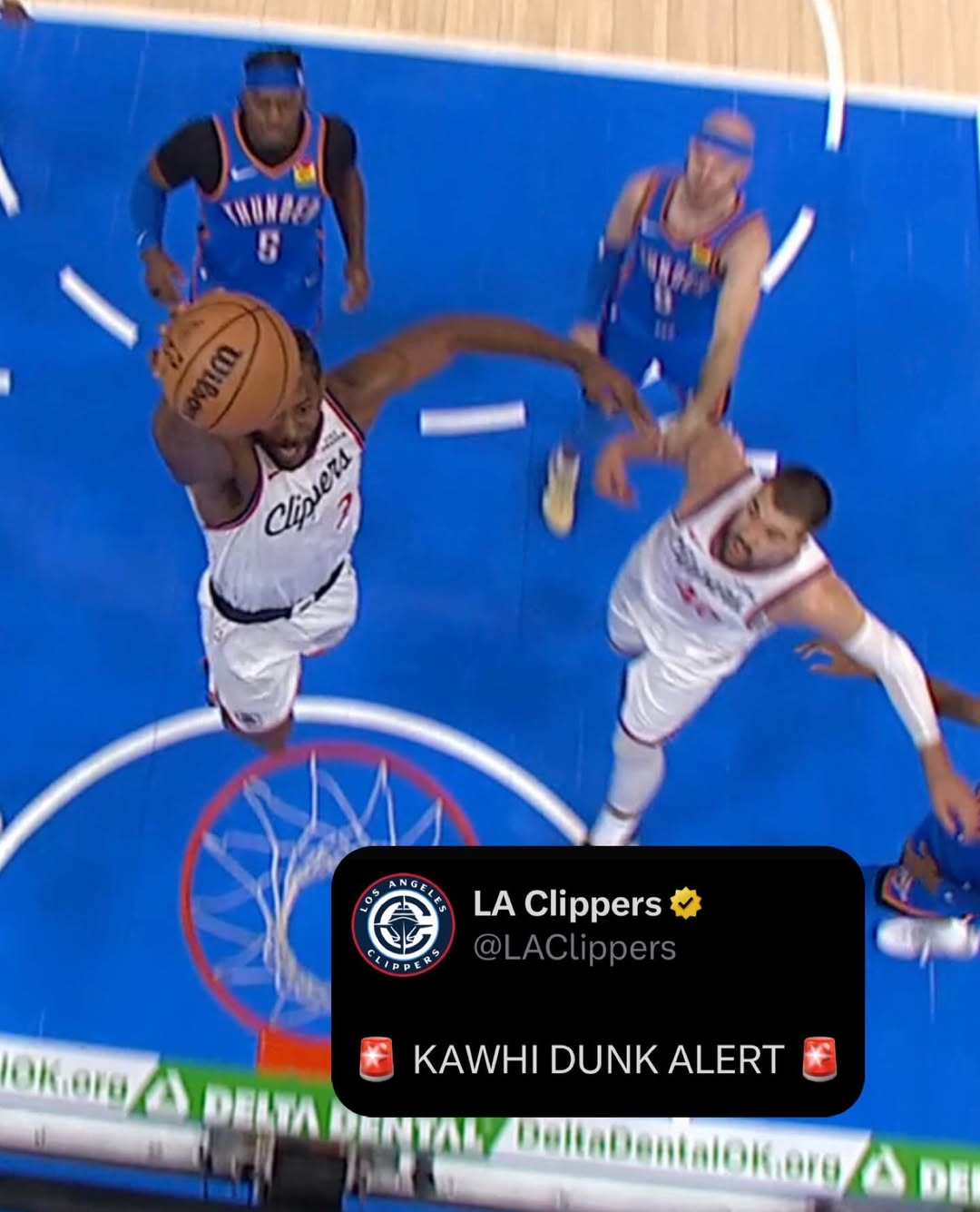 快船ins发布ins称,在你们的动态中投放一段科怀·伦纳德的扣篮视频