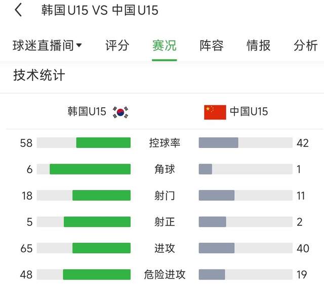 本场比赛,中国U15对韩国U15固然打平了,但各项数据齐是全面逾期,射门少了7脚,控球率也低了16%。要知谈,上一轮韩国U15然而0比2输给了中国香港。再加上本轮比赛,中国香港输日本0比2,国少队输了日本一个0比3,概括对比,国少队以致有可能连中国香港U15齐不一定能赢了。