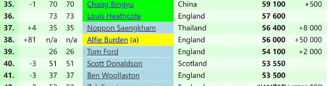 可别小看单场五万积分的威力,博登能蹿红,赛场里没一个东谈主能掉以轻心。谁会成为下一个外卡黑马,寰宇排名会不会再掀风浪,一切齐得等苏格兰公开赛落地才知谈效用。
